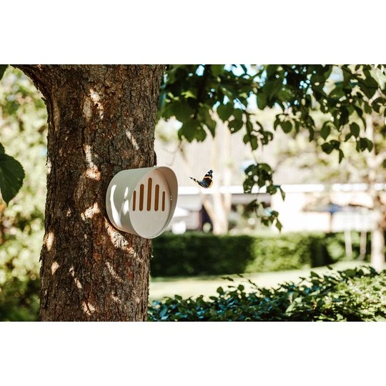 Het vlinderhuisje is verkrijgbaar in 3 verschillende kleuren: antraciet, bruin en wit. Het vlinderhuisje kan eenvoudig op 3 manieren worden bevestigd: aan een schroef, op een stok of met een band aan de regenpijp.