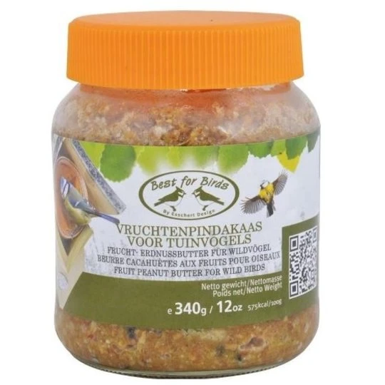 Vogelpindakaas is voor vogels een echte lekkernij! Deze traktatie bevat goede voedingsstoffen voor vogels. Daarnaast zit het boordevol calorieën, is het uiterst voedzaam en gezond. Deze pindakaas is speciaal voor vogels en is zoutarm en bevat daarnaast essentiële ingrediënten voor gezonde vogels. Normale pindakaas (voor eigen consumptie) bevat veel te veel zout en is daardoor ongezond voor onze gevleugelde vriendjes. Deze vruchtenpindakaas is daarom ideaal om tuinvogels en het hele jaar rond te gebruiken.