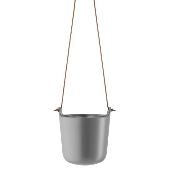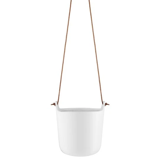 Zelfwatergevende, decoratieve bloempotten van mat steengoed met een leren koord om op te hangen. Een organisch ontwerp met een zelfbewateringssysteem dat de beste omstandigheden biedt voor het kweken van kruiden en bloemen. Door de nylon lont aan de onderkant van de bovenste pot kan de plant het benodigde water uit het waterreservoir in de onderste pot halen. De plastic inzet van de plant heeft een bewateringskanaal waardoor hij gemakkelijk kan worden bijgevuld.