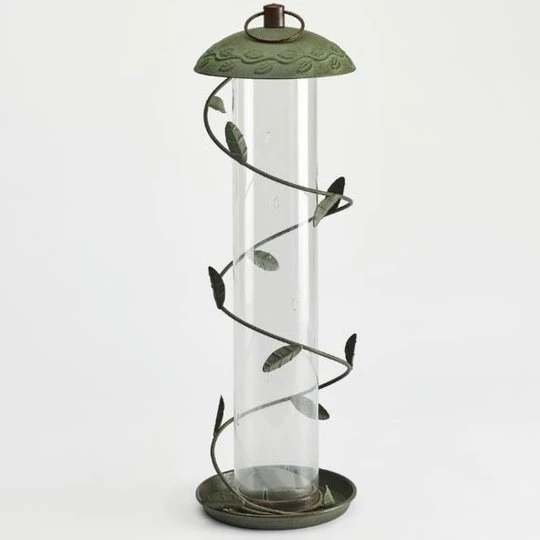 Voederhuisjes en silo’s zijn vaak simpel in ontwerp of enorm uitbundig. De secret garden spiraal vink feeder kiest voor een simpel maar toch speciaal ontwerp. Het de silo is rondom versiert met bladeren waar de vogels op kunnen zitten terwijl ze eten. Zelfs het dakje is voorzien van een decoratief reliëf. Hierdoor past deze voedersilo thuis in elk type tuin. De feeder beschikt over een transparante tube waarin je de zaden of fijn silovoer kan voeren. Dat maakt de feeder zowel stijlvol als functioneel!