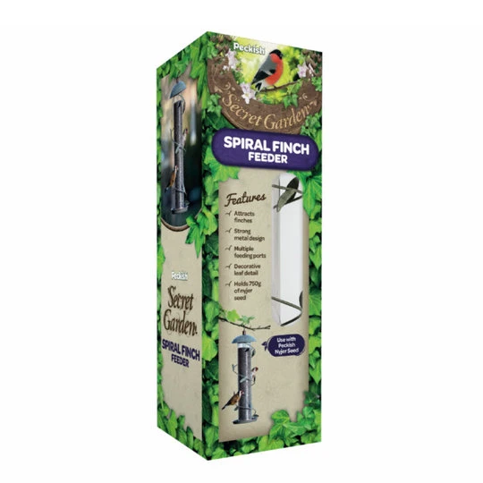 De secret garden spiraal vink feeder is niet je normale silo. Deze is namelijk vooral aantrekkelijk voor vinken. Dankzij de meerdere openingen kunnen meerdere vogels tegelijkertijd eten van het vogelvoer. En het rustieke metalen ontwerp maakt de silo enorm stevig. Als een soort fusie van rustiek en modern hangt deze voedersilo aan een tak, haakje of ander vastknooppunt.