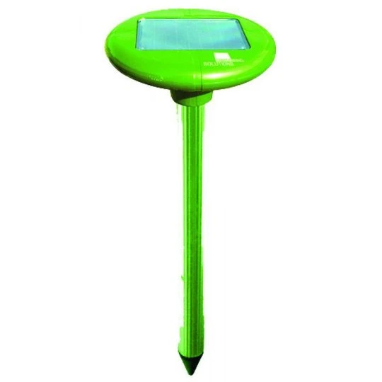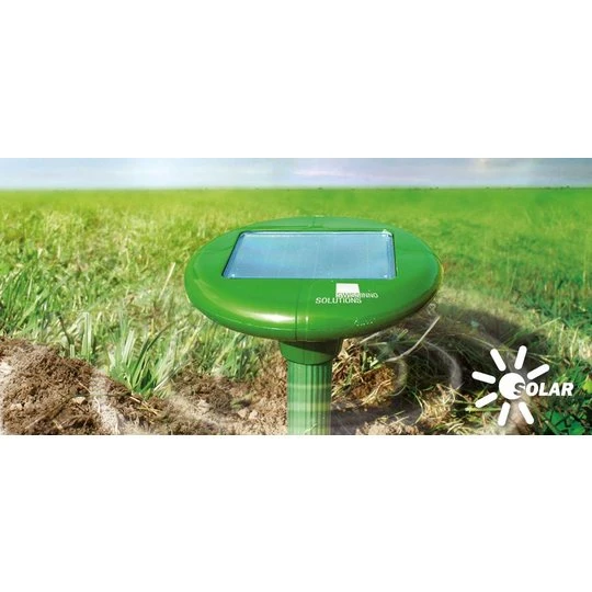 De knaagdierenverjager op zonne-energie zendt geluidsgolven uit die mollen, woelmuizen, muizen en ratten verjaagt uit een gebied van ongeveer 650 vierkante meter. Het product is bijzonder geschikt voor gebruik in tuinen en op grasperken. Om de 40 seconden stuurt het toestel hoogfrequente tonen uit die knaagdieren interpreteren als een natuurlijk gevaarsignaal, waardoor ze het gebied verlaten en de zone vermijden. De knaagdierenverjager op zonne-energie wordt gevoed door een zonnecel die zonne-energie omzet in elektrische stroom die op zijn beurt wordt gebruikt om de ingebouwde accu’s op te laden. Volledig opgeladen hebben de accu’s voldoende vermogen om de verjager tijdens de nachtelijke uren te bedienen en een 24-uurs bescherming te waarborgen.