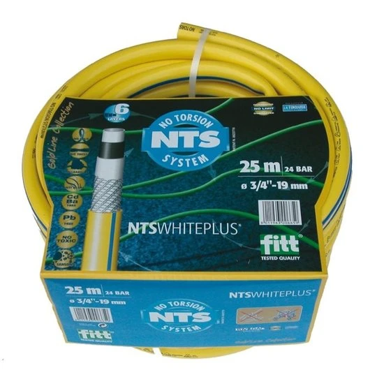 Deze getricoteerde gele tuinslang (no torsion white plus) is geschikt voor het verplaatsen van water op een grote afstand. Hij heeft een doorsnede van 1/2” inch en een lengte van 25m. Voor het aansluiten van de tuinslang op de kraan is een kraanstuk en een snelkoppeling nodig. Voor het aansluiten van de tuinslang op een sproeier of tuinspuit is een snelkoppeling met stop nodig