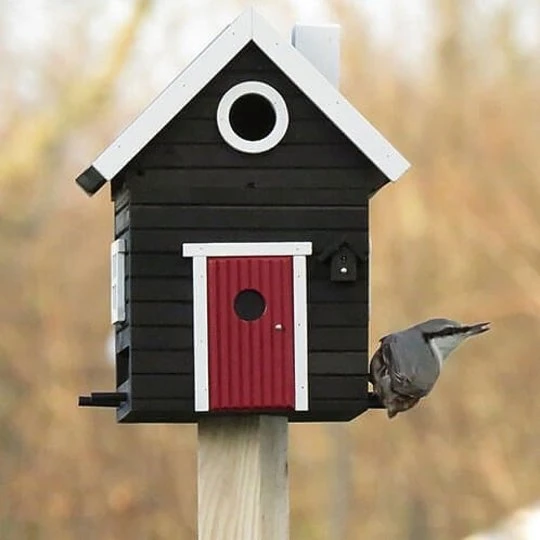 Dit moderne vogelvoederhuis Aalborg van Vogelbescherming Nederland is gemakkelijk te vullen met pinda’s door het dak op te tillen. Door het ophangkoord is het voederhuis op te hangen aan een tak of ophanghaak.