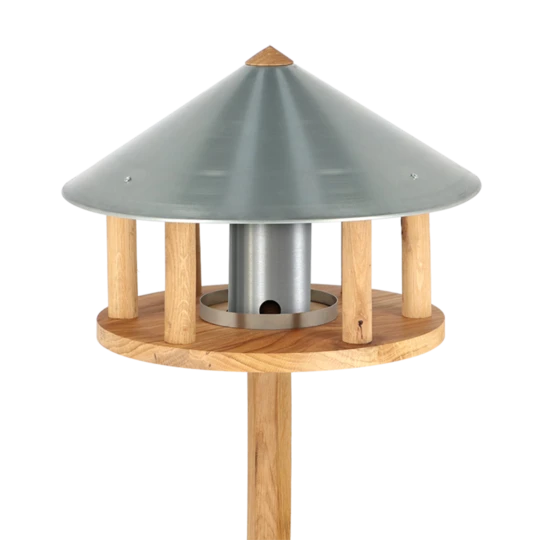 Voersilo Groot de multifunctionele voersilo met een strak Scandinavisch design. Wissel gemakkelijk tussen (grof) vogelzaad, pinda’s, meelwormen, vetbollen of verse appels Vogels zullen lekker van smullen! Je kan de silo uit de verpakking gelijk vullen met los vogelvoer. Bijvoorbeeld pinda’s of grof vogelvoer zoals zwarte zonnebloempitten, waar goudvinken, groenvinken en boomklevers dol op zijn. Maar wanneer je het inzetstuk uit de silo haalt kan je deze vullen met bijvoorbeeld vetbollen of vers fruit zoals een schoon gewassen appeltje. Zo kun je in de winter vetbollen serveren en in de zomer fruit en vogelvoer.