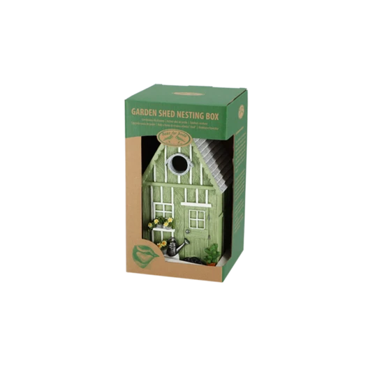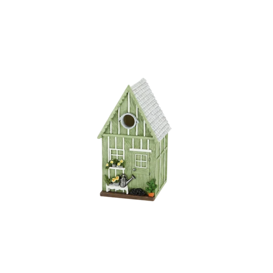 Deze hangende vogelvoeder in de vorm van een klein huisje is slim ontworpen. Het is ontworpen voor pinda’s die in een metalen gaas worden geplaatst. Dit beperkt het risico van uitwerpselen die in contact komen met het voedsel.