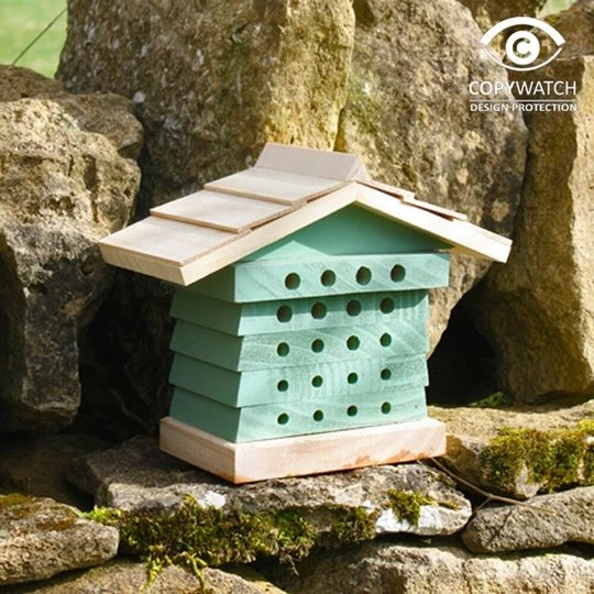 De bijen zijn niet gevaarlijk voor kinderen en/of huisdieren omdat ze op deze manier niet in kolonies leven en geen honing hebben om te verdedigen. Deze korf is gemaakt van FSC hout en is geschilderd met waterafstotende verf. Ook is deze voorzien van een handige ophanghaak.